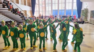 Viel Spaß hatten die 5. Klässler auch in diesem beim traditionellen Tutorenfasching. Verkleidet u. a. als Prinzessin, Cowboy oder Popcornverkäufer wurde eifrig getanzt und gefeiert. Die Darbietung des kleinen Hofstaats der FID Donauwörth, der zum 2. Mal zu Gast am Gymnasium Donauwörth war, war eine willkommene Abwechslung und bekam viel Applaus.